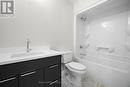 The ultimate family home is now on the market! This gorgeous 5 bedroom, 3 bathroom home in a brand new subdivision is exactly what you have been waiting for. Located on coveted airport hill, close to all amenities, no expense was spared. The main level consists of a primary bedroom with a custom and gorgeous ensuite, 2 other additional bedrooms an impressive 4 pce bathroom and an open concept dining/kitchen/ living room with beautiful cabinets and quarts counters. With a sliding patio door that brings you to your fantastic deck for entertaining guests. Perfect for BBQ'd dinners. The lower level has a one of a kind rec room. It's massive. Would be perfect for a pool table/ projection tv, and really what ever your designing imagination can create! Another 3 pce bathroom, large bedroom and another den/office. The home has been very well thought out and the floor plan is spectacular. This home is a turn key new build complete with in ground sprinklers, Tarion warranty and will be sodded in the spring. (id:27)